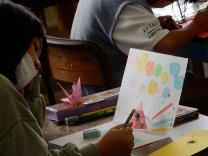 9/20(火) 4年生 公開日 2022/09/20 更新日 2022/09/20 4年生 図工です。「カードで伝える気持ち 飛び出すハッピーカード」の制作です。作品が完成し、説明書作りをしています。この後、お互いの作品を見合う鑑賞会を行います。