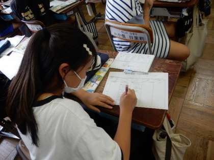 9/22(木) 6年生 公開日 2022/09/22 更新日 2022/09/22 6年生 家庭科です。「まかせてね 今日の食事」の学習です。 よりよい食事にするために食品の組み合わせや環境への影響も考えて、家族が喜ぶ1食分の献立を考えています。