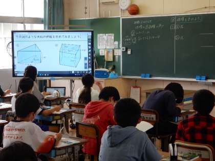 9/26(月) 6年生 公開日 2022/09/26 更新日 2022/09/26 6年生 算数です。「立体の体積」の学習です。立体の体積を求める公式を使って、いろいろな問題に挑戦しています。公式を使いこなせているようです。