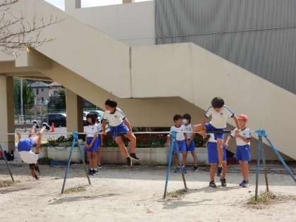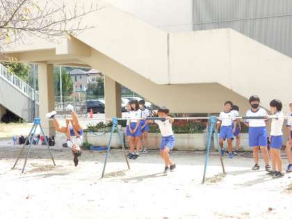 9/29(木) 4年生 公開日 2022/09/29 更新日 2022/09/29 4年生 体育です。「器械運動(鉄棒運動)」の学習です。私が参観していると、子どもたちが得意技を次々と見せてくれます。たくさん技を覚えて、また、見せてくださいね。