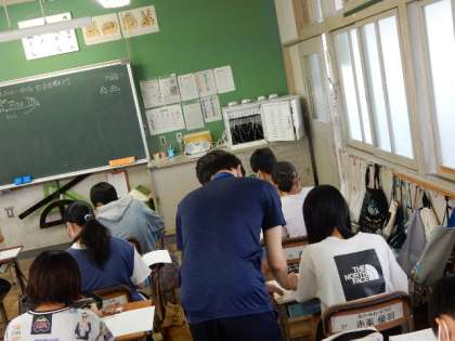10/4(火) 6年生 公開日 2022/10/04 更新日 2022/10/04 6年生 算数です。「比とその利用」の学習です。教育実習生の先生の実習授業です。子どもたちが理解できるように、しっかり準備をして、丁寧な説明をしてくれています。