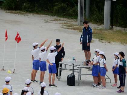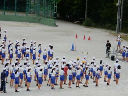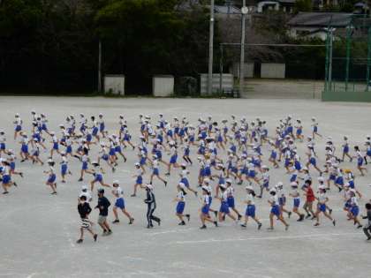 5・6年生がオカリンピックの合同練習を行っています。開会式の練習、隊形移動の練習をしています。演技や競技同様、隊形移動もキビキビとした動きでやる気が伝わってきます。