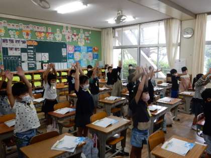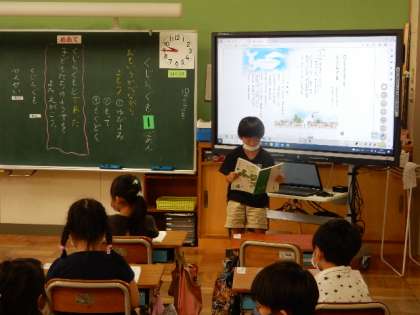 10/6(木) 1年生 公開日 2022/10/06 更新日 2022/10/06 1年生 国語です。「くじらぐも」の学習です。くじらぐもと出会った子どもたちの様子を読み描きます。雲や子どもになりきって音読をするためにイメージをつかんでいます。