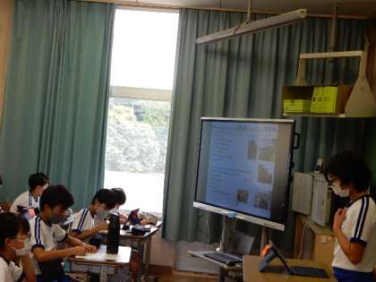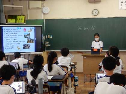 10/7(金) 6年生 公開日 2022/10/07 更新日 2022/10/07 6年生 英語です。修学旅行の思い出を英作文にししました。今日は発表会です。発音よく発表できています。作文の量も中学生顔負けです。
