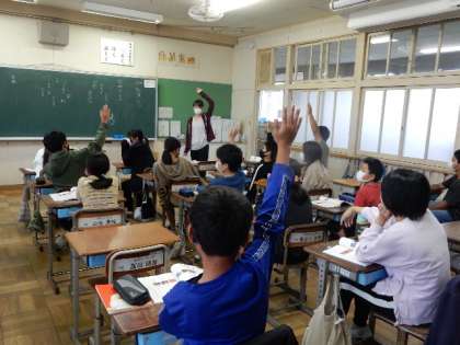 10/7(金) 6年生 公開日 2022/10/07 更新日 2022/10/07 6年生 国語です。「季節の言葉(秋探し)」秋に関する言葉の学習です。「○○の秋」といえば?それぞれのイメージしている秋を考え、発表し合っています。