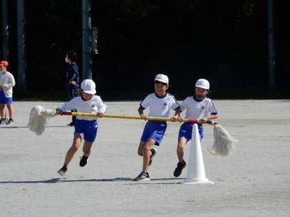 3・4年生で合同のオカリンピックの練習です。本番まであと1週間、流れを確認しながら競技の練習です。
