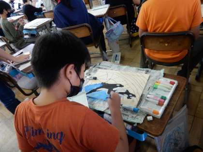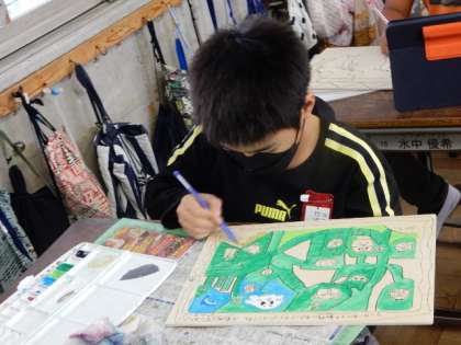 10/17(月) 5年生 公開日 2022/10/17 更新日 2022/10/17 4年生 図工です。「糸のこスイスイ」の製作です。糸のこぎりを使って、パズルゲームを作ります。自分の好きな絵を描いてパズルができるなんて楽しそうですね。