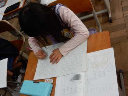 10/27(木) 1年生 公開日 2022/10/27 更新日 2022/10/27 1年生 国語です。「くわしく かこう(しらせたいな,見せたいな)」の学習です。東山動物園の見学で見た動物を紹介する作文を書いています。自分が知らせたいことを詳しく伝える練習です。