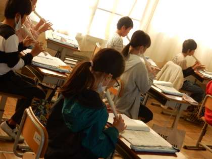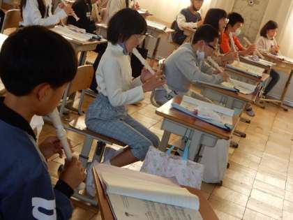 10/28(金) 4年生 公開日 2022/10/28 更新日 2022/10/28 4年生 音楽です。「もののけ姫」のリコーダー練習を行っています。音域が広いので指使いの難しさに、苦心しながら何度も練習して仕上げています。