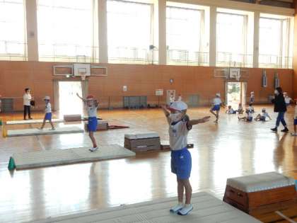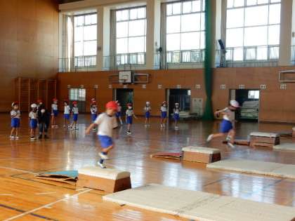 10/28(金) 1年生 公開日 2022/10/28 更新日 2022/10/28 1年生 体育です。「跳び箱を使った運動遊び」の学習です。 小学生になってはじめての跳び箱運動です。まずは、ジャンプで跳び箱を踏み越えていきます。