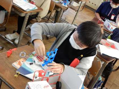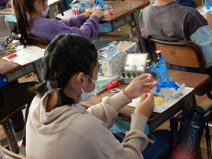 理科です。「電流が生み出す力」の学習です。実験で、コイルの巻き数が多いほど、電流の強さが強いほど、電磁石の磁力の強さが大きくなることが分かりました。