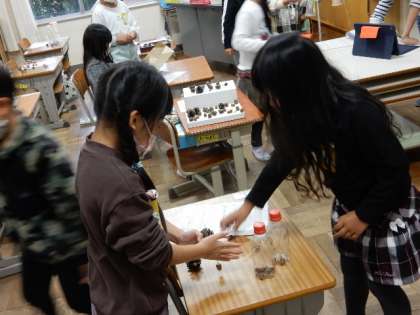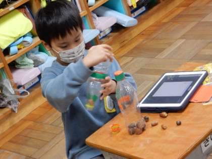 11/1(火) 1年生 公開日 2022/11/01 更新日 2022/11/01 1年生 生活科です。「見つけた あきで あそぼう」の学習です。うまくいかないことを見つけては、作っては試し、作っては試しと繰り返し、どんどん完成度が高まっています。