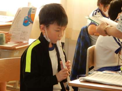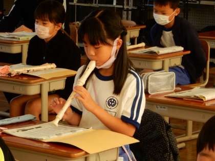 11/8(火) 3年生 公開日 2022/11/08 更新日 2022/11/08 3年生 音楽です。「レッツゴーソーレー」のリコーダーのテストを行っています。緊張感漂う中、練習の成果を発揮しようと、みんながんばっています。