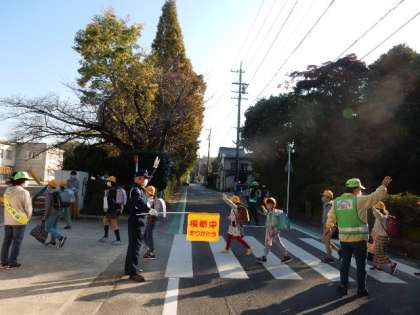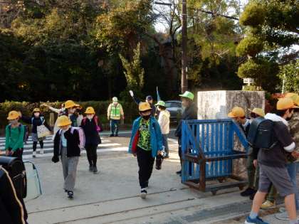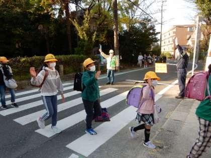 今日は、交通指導員さん、地域の方々、PTAの皆さん、あいさつ有志のこどもたちにに迎えられての登校です。少しずつ下がってきた気温にも負けないにぎやかさです。