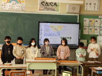 11/15(火) 2年生 公開日 2022/11/15 更新日 2022/11/15 2年生 音楽です。「むしのこえ」をグループで、うたったり、虫の声を楽器で表したりしています。グループごとの発表に緊張気味ですが、にぎやかな虫の声が聞こえてきます。