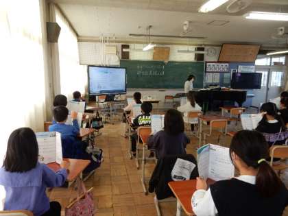 11/16(水) 3年生 公開日 2022/11/16 更新日 2022/11/16 3年生 音楽です。「雪のおどり」の歌の練習です。曲の感じを捉えて歌うことがめあてです。メロディを覚えたら輪唱曲なので輪唱にも挑戦します。