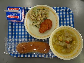 11/16(水) 給食 公開日 2022/11/16 更新日 2022/11/16 給食 今日の献立は こめこいりパン ぎゅうにゅう だいずいりナゲット 2こ ポトフ ごぼうサラダ(たくじょうごまドレッシング) です
