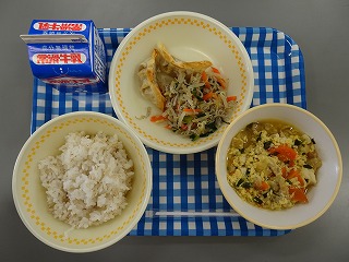 11/22(火) 給食 公開日 2022/11/22 更新日 2022/11/22 給食 今日の献立は むぎごはん ぎゅうにゅう やきぎょうざ 2こ ちゅうかふうたまごとじに やさいとしらすぼしのナムル です