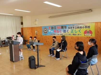 11/24(木) 式典リハーサル 公開日 2022/11/24 更新日 2022/11/24 全校 明日の150周年式典のリハーサルを行いました。「大好き!岡田小学校」の通し練習をしましたが、さすが学年代表、思いのこもった作文に胸を打たれます。