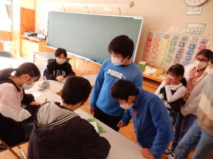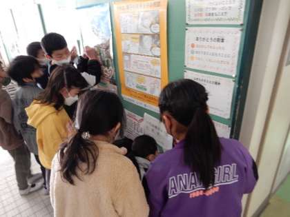 12/1(木) 児童会企画 公開日 2022/12/01 更新日 2022/12/01 全校 今日も大放課に児童会企画のペア活動が行われました。今日は5年生と3年生のペアです。ヒントの書いてある場所が指定され、すべてのヒントを集め、集会室で児童会役員に答え合わせをしてもらいます。校舎を一緒に回りながら考え合うことでペアの交流も深まりました。