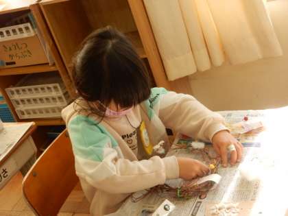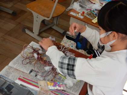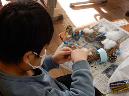 12/9(金) 1年生 公開日 2022/12/09 更新日 2022/12/09 1年生 生活科です。朝顔のつるを使ったリース作りです。木の実やリボン綿などを使ってクリスマスらしいリースが続々とできあがっています。