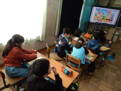 12/12(月) 3年生 公開日 2022/12/12 更新日 2022/12/12 3年生 外国語活動です。ゲームをしながら「circle」「heart」「triangle」「diamond」など形を表す英単語の発音の練習や聞き取りの練習をしています。