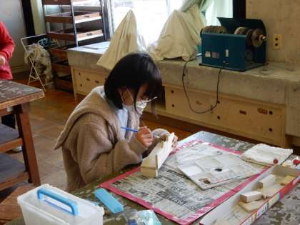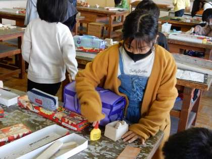 図工です。「ギコギコトントンクリエーター」の製作です。完成が近づき、何を作っているか形が見えてきました。道具を扱う腕も磨くことができました。