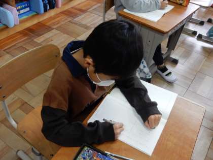 12/14(水) 1年生 公開日 2022/12/14 更新日 2022/12/14 1年生 国語です。「てがみで しらせよう」の学習です。楽しかったことやうれしかったことを、友だちに知らせる手紙を書きます。たくさん文章を書けるようになって、成長を感じます。