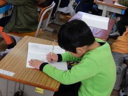 国語です。「てがみで しらせよう」の学習です。楽しかったことやうれしかったことを、友だちに知らせる手紙を書きます。たくさん文章を書けるようになって、成長を感じます。