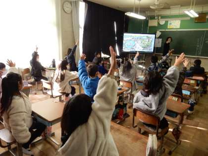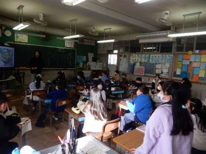 12/21(水) 3年生 公開日 2022/12/21 更新日 2022/12/21 3年生 国語です。「たから島のぼうけん」の学習です。組み立てにそって,物語を書こうがめあてです。たから島の地図に描かれていることをもとに、想像力をはたらかせて、自分だけの物語を作っています。