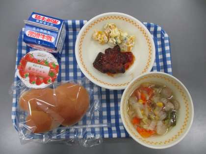 12/22(木) 給食 公開日 2022/12/22 更新日 2022/12/22 給食 今日の献立は クロスロールパン ぎゅうにゅう もみのきハンバーグのトマトソースかけ パンプキンサラダ ポトフ セレクトデザート です