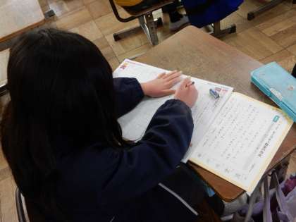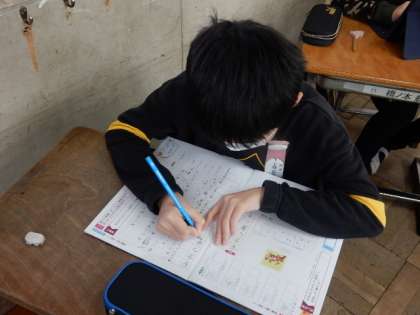 1/13(金) 3年生 公開日 2023/01/13 更新日 2023/01/13 3年生 書写です。硬筆の練習です。書写の練習と同時に原稿用紙への書き方も学びます。点や丸のつけかた、かぎかっこの書き方などを確認しなが字の練習をしています。