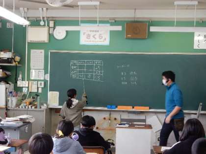 1/17(火) 4年生 公開日 2023/01/17 更新日 2023/01/17 4年生 算数です。「表を使って考えよう」の学習です。表を使うと、分かっている値から、知りたい値を計算で知ることができます。表のよさを学んでいます。