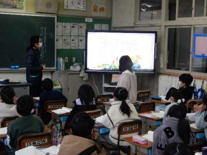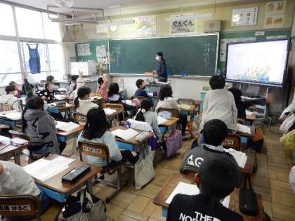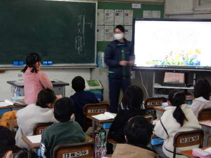 国語です。「おにごっこ」という教材で説明文の学習です。めあては、「だいじなことばに気をつけて読み,分かったことを知らせよう」です。説明文を読み取って、みんなに伝える力を身につけます。