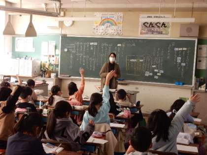 1/20(金) 2年生 公開日 2023/01/20 更新日 2023/01/20 2年生 道徳です。「大なわ大会」という教材を通して、よりよいクラスになるためには何ができるか考えています。みんなしっかり自分の意見をもって発表しています。