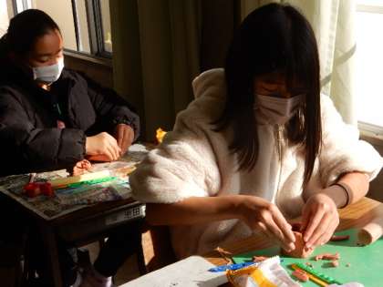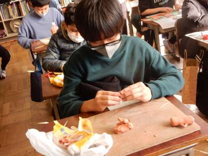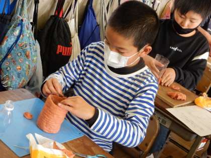 図工です。乾くと焼き物のようになる粘土を使っての製作です。この学級も個性あふれるデザインの焼き物がたくさんできそうです。完成が楽しみですね。