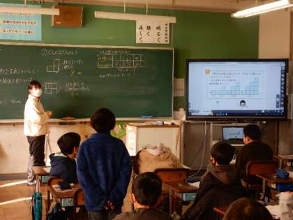 1/27(金) 4年生 公開日 2023/01/27 更新日 2023/01/27 4年生 算数です。「変わり方 」の学習です。規則的に変わっていく数の変化を表にして、その変わり方から、未知の値を探っていきます。