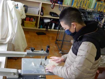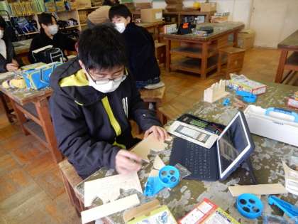 1/27(金) 6年生 公開日 2023/01/27 更新日 2023/01/27 6年生 図工です。「テープカッターづくり」の製作です。下描きがデイ上がりましたので、いよいよ電動糸のこぎりで切る作業に入りました。