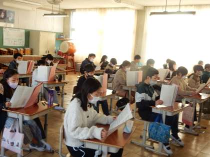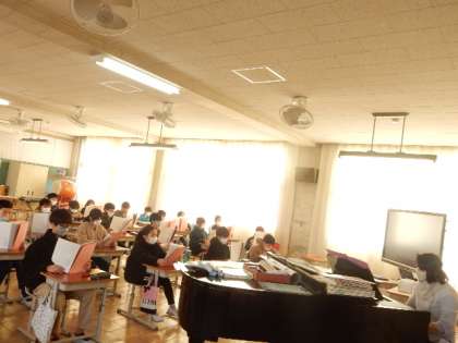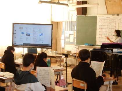 音楽です。「大切なもの」の合唱練習です。音楽記号に合わせて、しっかり強弱をつけて歌っています。メリハリのある美しいメロディーが奏でられています。