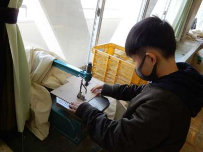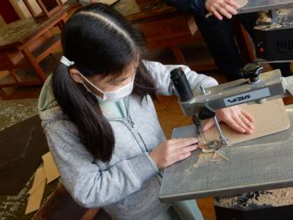 1/30(月) 5年生 公開日 2023/01/30 更新日 2023/01/30 5年生 図工です。「スペシャル伝言板」の製作です。下描きのデザインが終わりましたので、電動糸のこぎりで、木板を切る作業に入りました。慎重に、慎重に作業をしています。