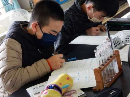 1/31(火) 6年生 公開日 2023/01/31 更新日 2023/01/31 6年生 理科です。「水溶液」の学習です。炭酸水から出る気体が二酸化炭素かどうか調べる実験をしました。石灰水が白く濁ったことから…、実験結果をまとめています。