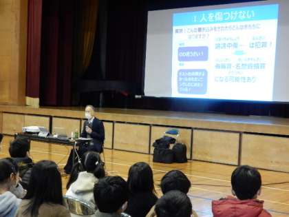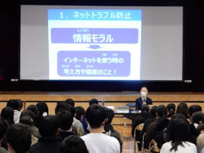 2/1(水) 情報モラル教室 公開日 2023/02/01 更新日 2023/02/01 全校 5・6年生対象に、情報モラル教室を開催しました。KDDIから講師さんをお招きし、専門的な角度から情報機器を扱ううえで気を付けなければならないことなどをご講義いただきました。情報機器との正しい付き合い方を身に付けてくださいね。