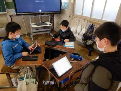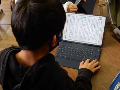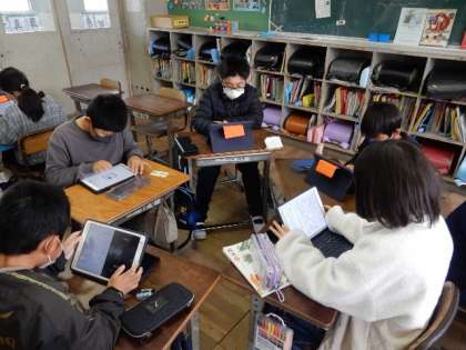 2/1(水) 4年生 公開日 2023/02/01 更新日 2023/02/01 4年生 国語です。「ウナギのなぞを追って」の学習です。単元のめあては、興味をもったことを中心に,紹介しようです。ロイロノートにまとめた紹介文を読み合って、感想を伝え合っています。