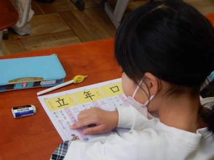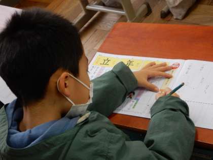 2/1(水) 1年生 公開日 2023/02/01 更新日 2023/02/01 1年生 国語です。新出漢字の練習です。今日は「口、年、立、草」です。文例を読んで、筆順を確認して、空書き、練習といつもの手順も手馴れてきましたね。