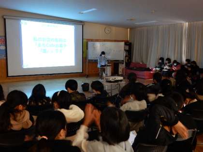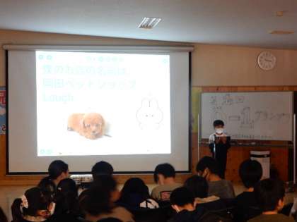 2/2(木) 3年生 公開日 2023/02/02 更新日 2023/02/02 3年生 総合的な学習です。「岡田のまちを知ろう」の学習のまとめで、岡田に合ったらいいなという店を考えて、発表会を開いています。校外学習などで学んだことをもとにして、世界に一つだけの店がたくさんできました。
