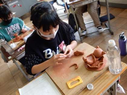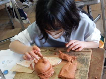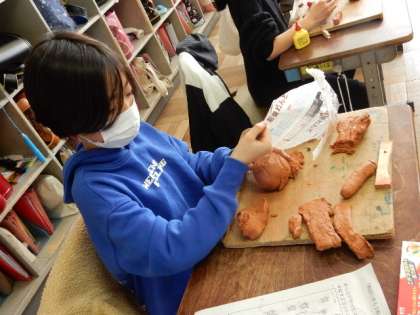 2/3(金) 3年生 公開日 2023/02/03 更新日 2023/02/03 3年生 図工です。粘土を使って、マスコットキャラクター作りです。粘土を細かいパーツに分けて、細かいところまで表現します。