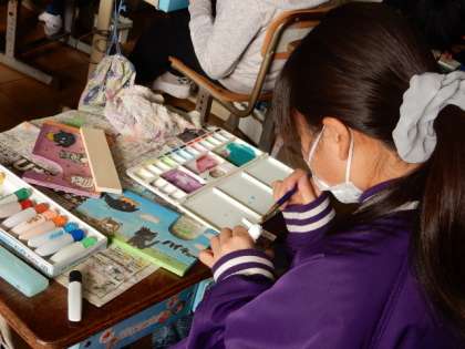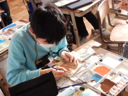 2/7(火) 6年生 公開日 2023/02/07 更新日 2023/02/07 6年生 図工です。「テープカッターづくり」の制作です。板を切り終わり、着色の作業に入りました。きれいな色で塗られていき、完成が近づいています。