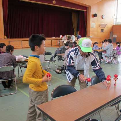 体育館の中では,将棋,あやとり,折り紙,紙風船,けん玉・羽子板遊びなどを関係者の方々から子どもたちに教えてもらい,楽しく過ごしました。