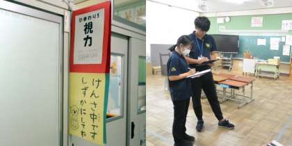 今日は 午後から 就学時健診 来年度 岡田小学校に 入学予定の園児が 健診に来ました。 4月に 待ってるよ!