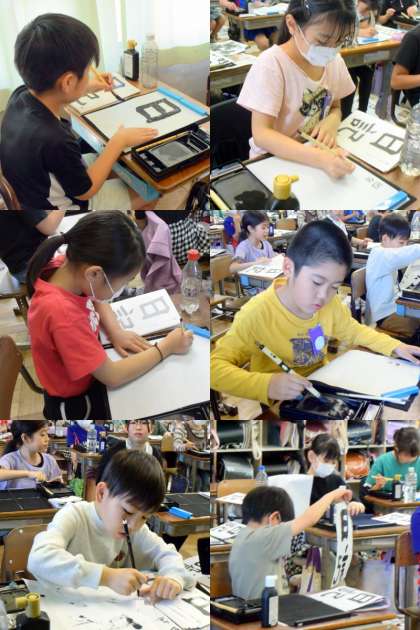 名前を書くために 細筆の練習も 筆の持ち方と 向きにに コツが・・・